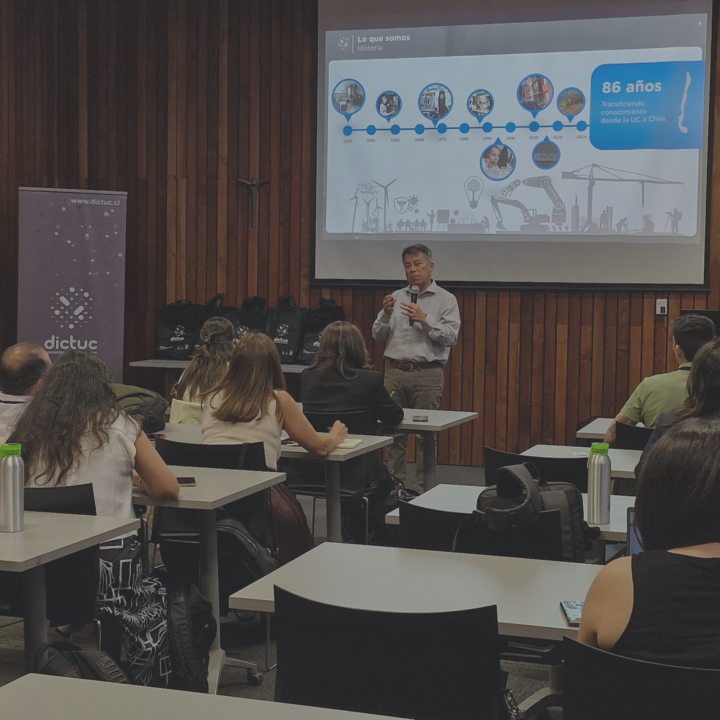En su exposición, Bahamondes repasó la historia de Dictuc, subrayando su rol como puente entre el conocimiento académico y la práctica empresarial. Además, presentó ejemplos de empresas derivadas y proyectos emblemáticos, ilustrando cómo la colaboración entre la academia y la industria permite impulsar la innovación y contribuir al desarrollo sostenible.